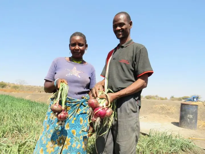 Sanare is now a trainer to his neighbors and the entire Mbuyuni community. They come to learn about farming as well as land use management. From his one acre piece of land, he is cultivating onions, tomatoes and green vegetables. These take only three months to harvest, and fetch high prices in the market, and are also a source of nutrition for his family.